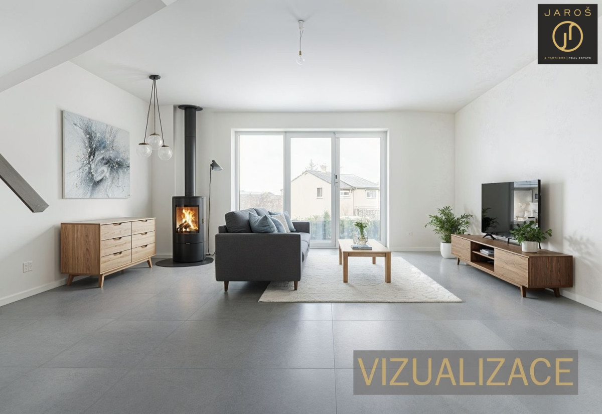 Prodej moderní patrové novostavby 4+kk o obytné ploše 96 m2 na pozemku o velikosti 369 m2 v obci Brandýsek, okres Kladno.