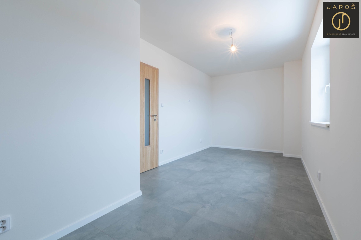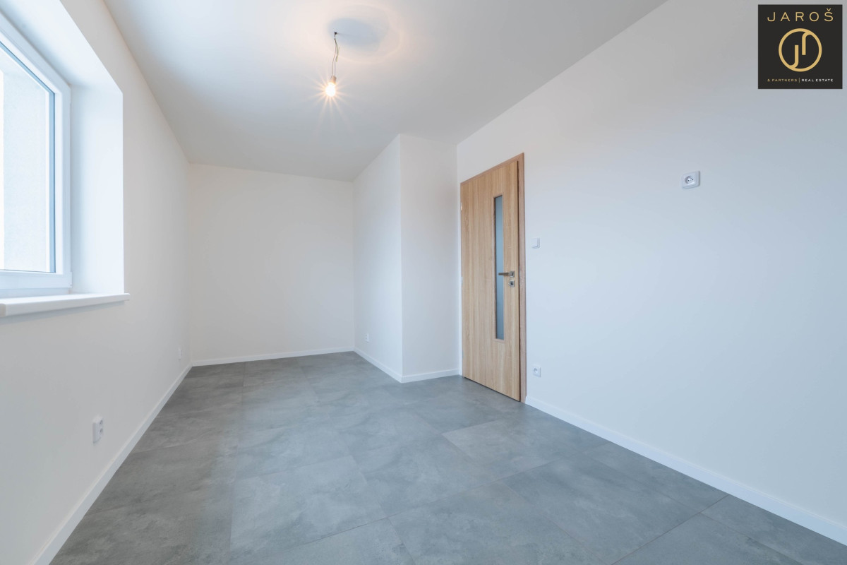Dům nabízí promyšlenou dispozici a kvalitní zpracování. V přízemí je zádveří, samostatné wc, technická místnost, šatna a světlý obývací prostor s kuchyní a přímým vstupem na terasu. V patře jsou tři samostatné pokoje, koupelna se sprchovým koutem, bidetem a wc. V celém domě je na podlahách kvalitní dlažba.